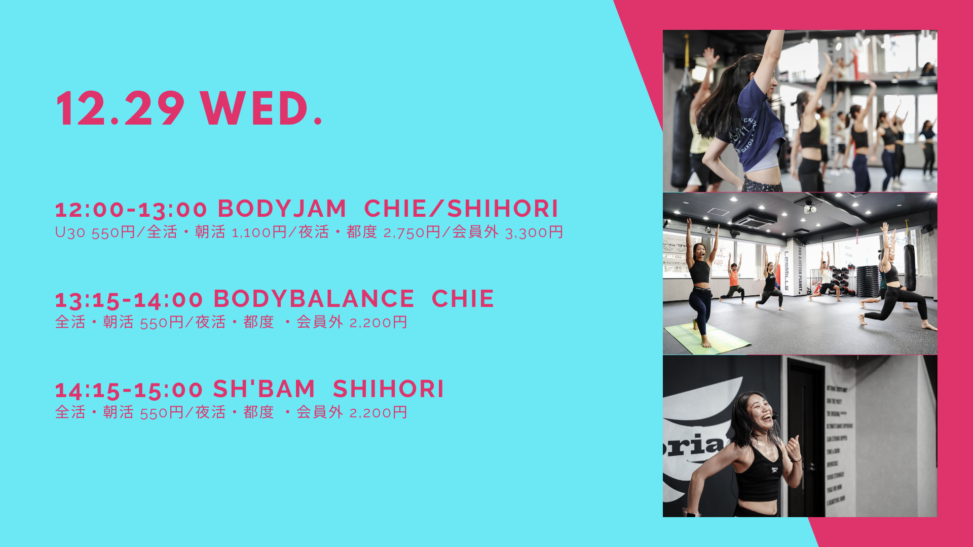 12/29(水)~1/2(日)は特別スケジュールとなります。